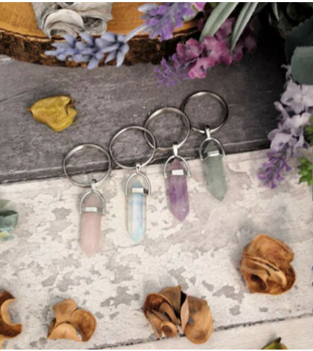 Natural Terminated Carved Point Crystal Keychain, Reiki Healing, Gemstone Keyring
