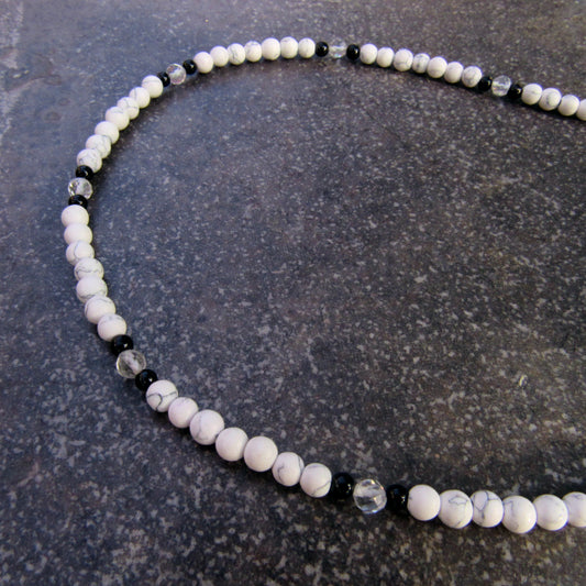 White turquoise, Onyx, and Clear Quartz gemstone eyeglass holder and mask holder