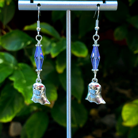 Halloween Ghost and Swarovski Crystal Dangle Earrings