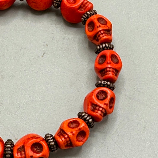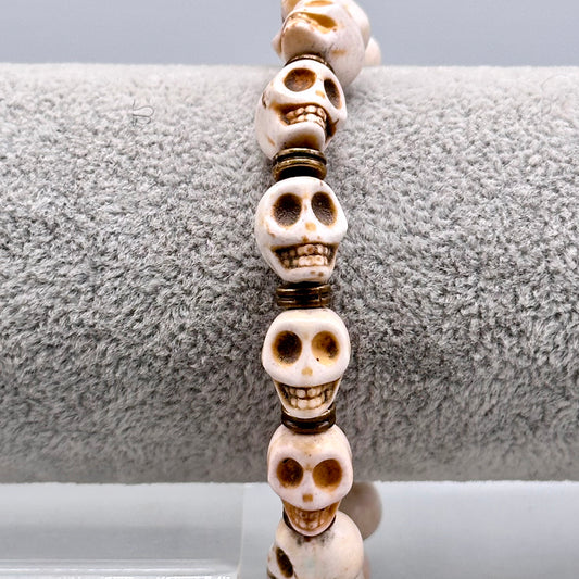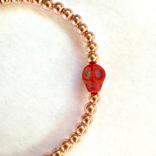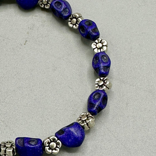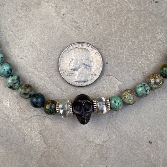 Women's Gemstone Beaded Bracelet with Hematite Skulls