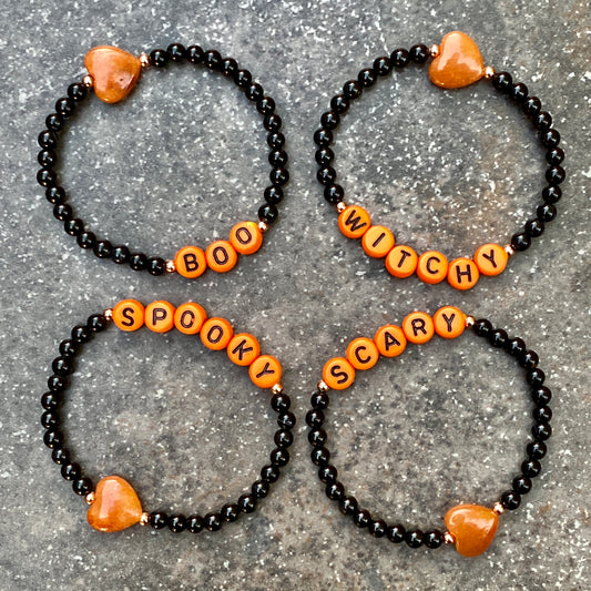 Kid’s Halloween gemstone Phrase bracelets