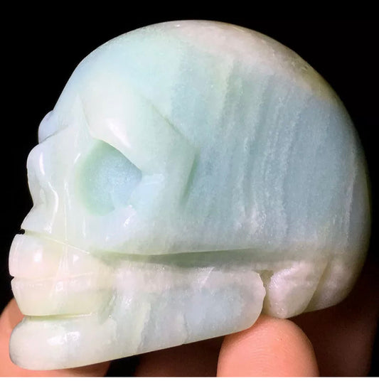 Caribbean Blue Calcite Aragonite gemstone carved Skulls, New Rare Crystal