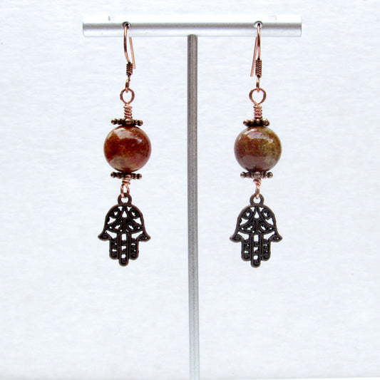 Phantom Ghost gemstones and Copper Hamsa Drop Earrings