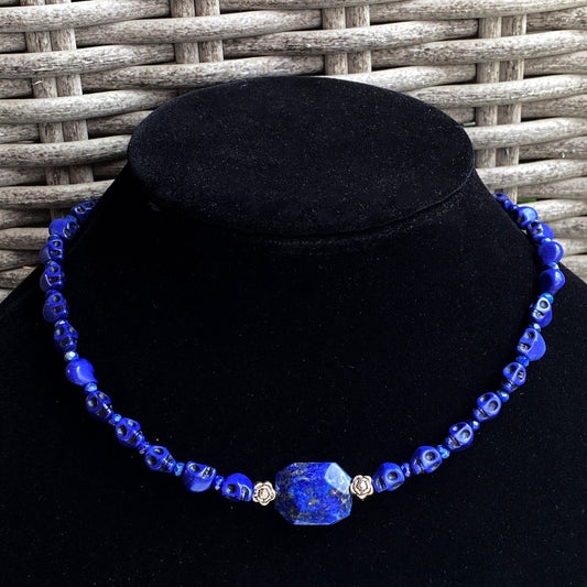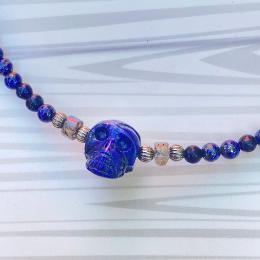 Lapis Lazuli, Labradorite gemstones, and Sterling Silver Skull Choker