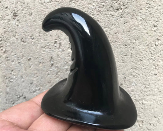 Natural Black Obsidian gemstone Witch Hat