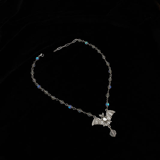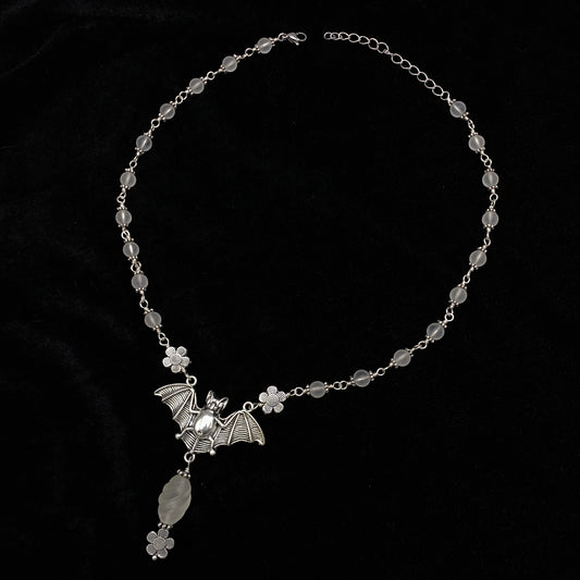 Clear Quartz gemstone crystals bat pendant Halloween Necklace