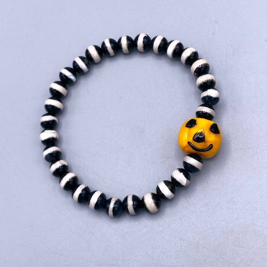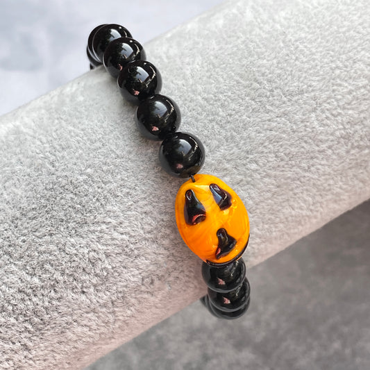 Pumpkin and Onyx gemstone Stretch Bracelet