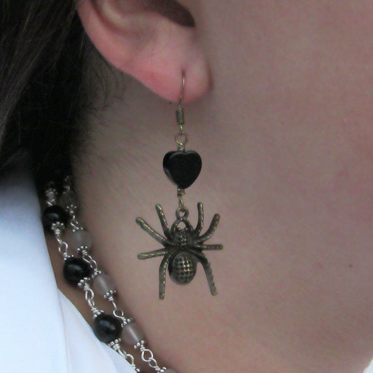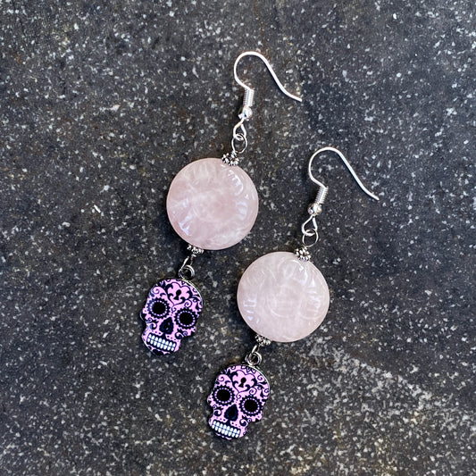 Gemstone with Metal Sugar Skull dangle and drop Earrings