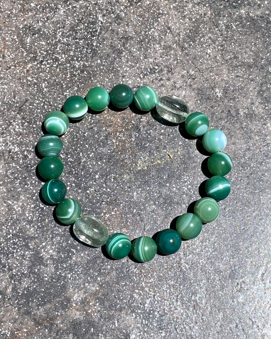Green Banded Agate and Ghost Quartz Beaded Bracelet
