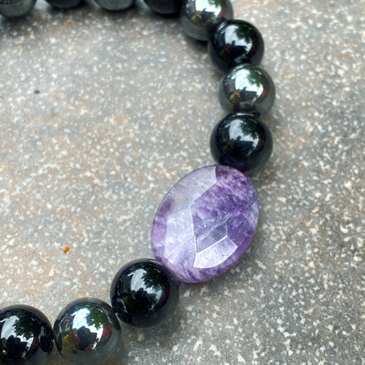 Hematite, Onyx, Amethyst, Howlite Gemstone Skull Stretch Bracelet
