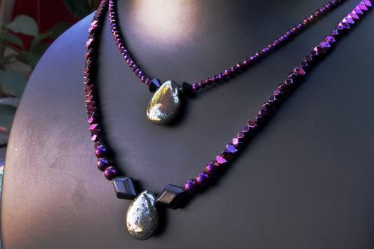 Rainbow Hematite and Amethyst gemstone choker necklace