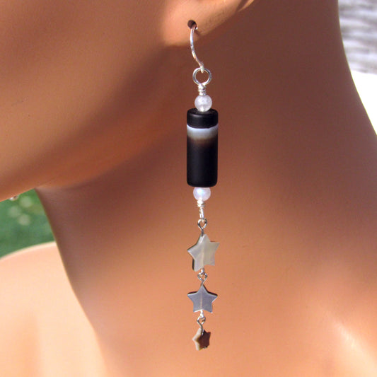 Black Agate Star, 14 kt Gold Fill, and Mother of Pearl Drop Earrings