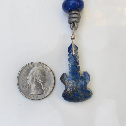 Blue Lapis Lazuli gemstone carved Guitar pendant on Hand Knotted Leather