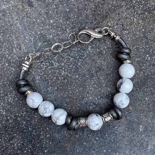 Women’s Howlite gemstone and Sterling Silver Bracelet on Leather