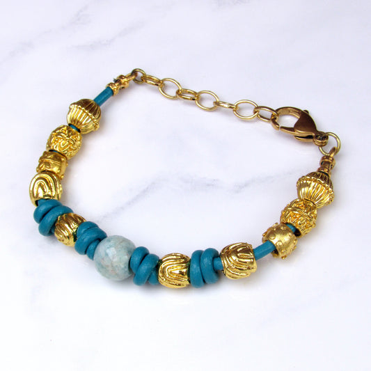 Amazonite gemstone with Bali Beads on hand knotted Leather