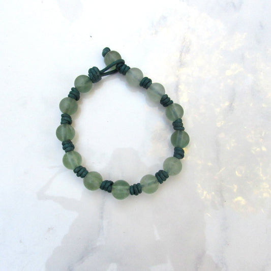 Green Leather Fluorite gemstone Hand Knotted Leather Bracelet