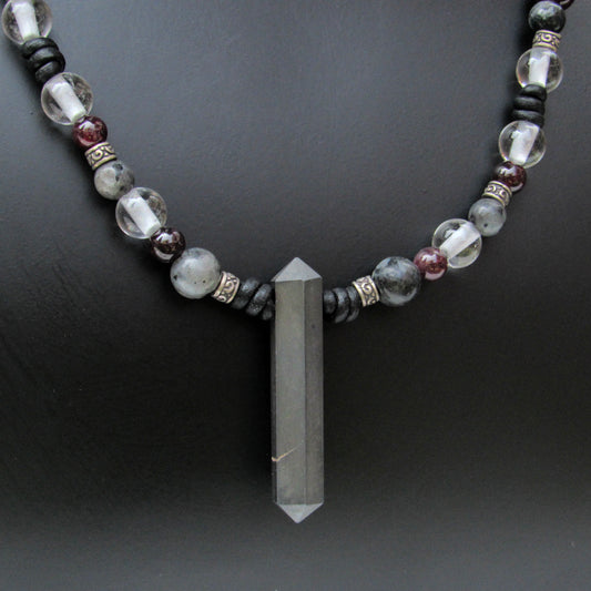 Pyrite, Garnet, Clear Quartz, Black Labradorite gemstones with Sterling Silver on Leather