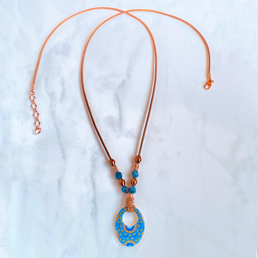 Mother of Pearl, Apatite gemstone, and Copper on Leather Necklace