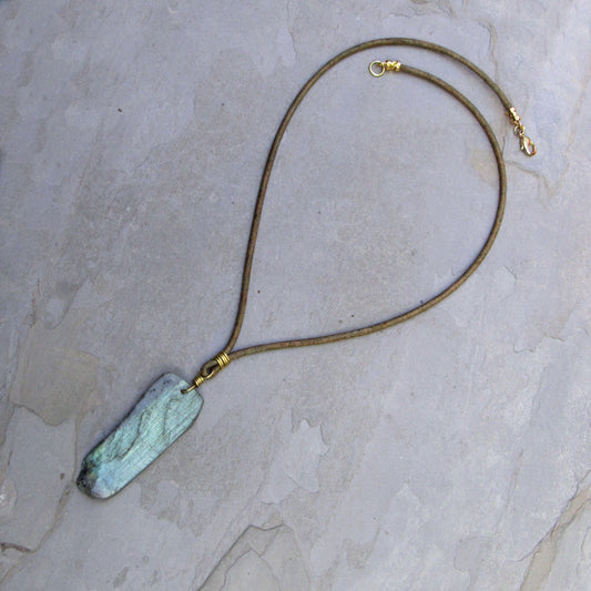 Labradorite gemstone hand wrapped with Brass on leather necklace