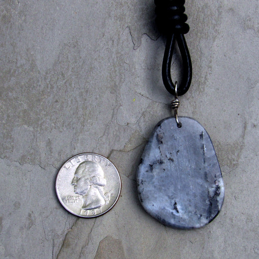Labradorite gemstone hand Wrapped with Sterling Silver Hand Knotted on Black Leather Necklace