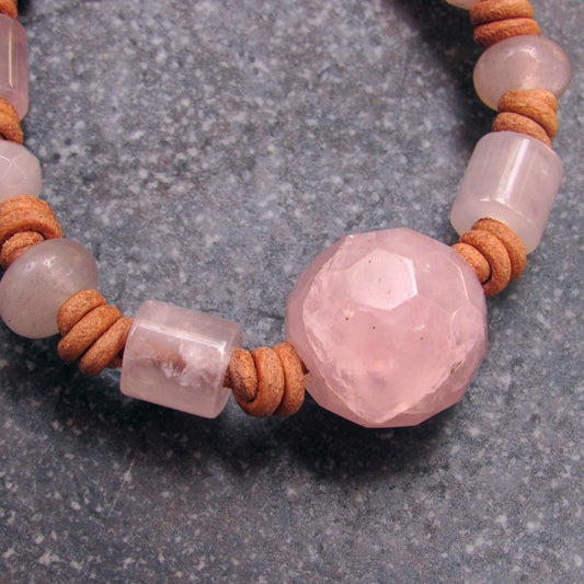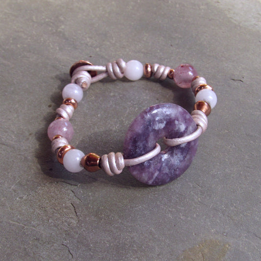 Rose Quartz and Leather Bracelet with Copper Button