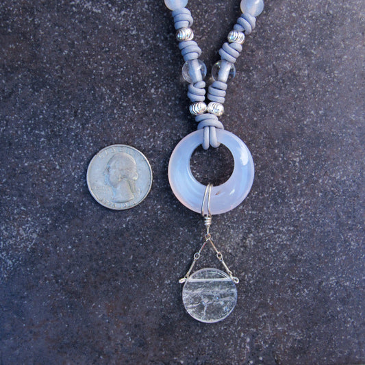 White Agate, Clear Quartz on Leather with Sterling Silver