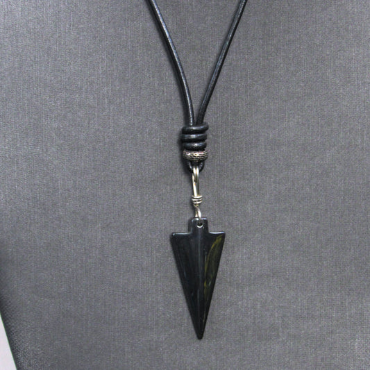 Hematite Arrow Hand Wrapped and Knotted with Sterling Silver on Leather Necklace