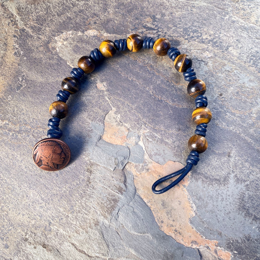 Hand knotted Leather Gemstone Bracelets with Replica of Indian Head Nickel