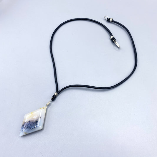 Leather and sterling Silver necklace with Dendritic Agate Gemstone Pendant