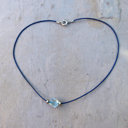 Thin Leather and Natural Topaz Gemstone necklace with Sterling Silver
