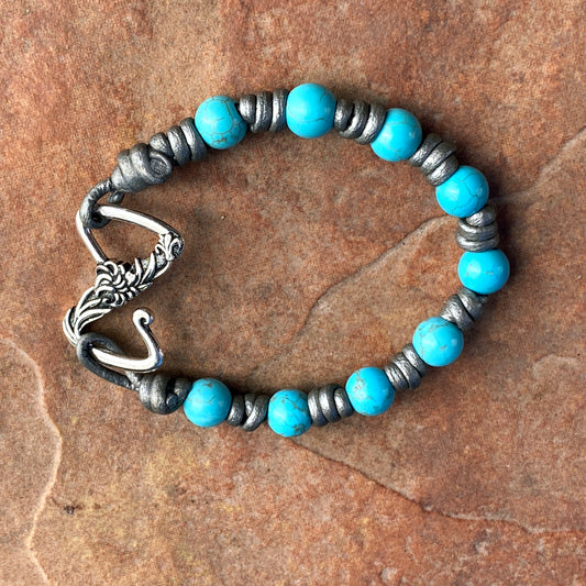 Women’s hand knotted Leather and Metal Howlite Gemstone bracelet