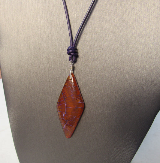 Dragon’s Vein Agate gemstone, Sterling Silver, and Leather
