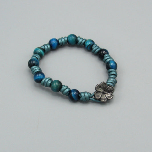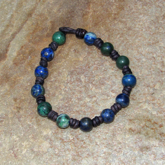 Hand knotted Lapis Lazuli gemstone and Chrysocolla Leather Bracelet