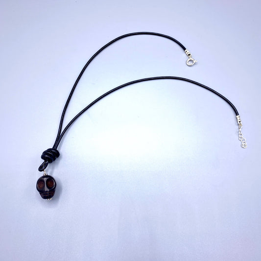 Leather and Gemstone Skull necklaces with Sterling Silver