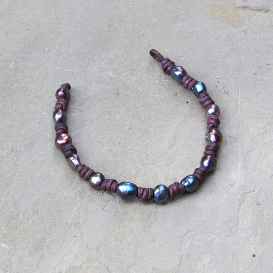 Authentic Freshwater Pearl Bracelet Hand Knotted on Purple Leather