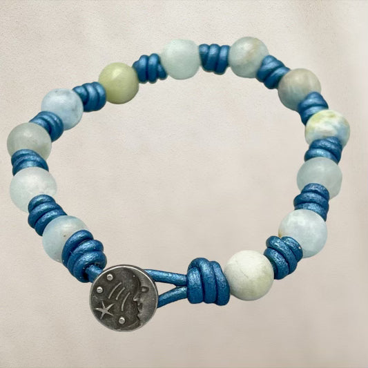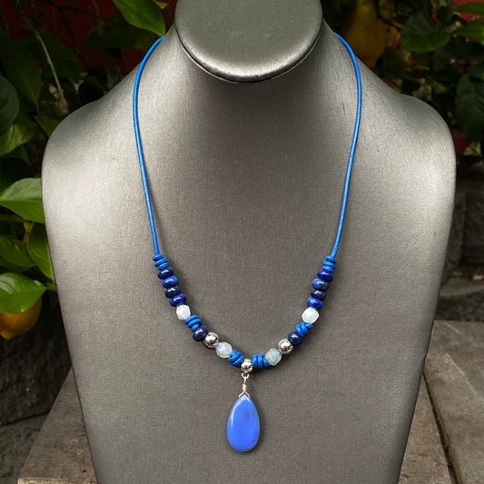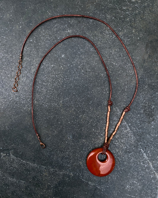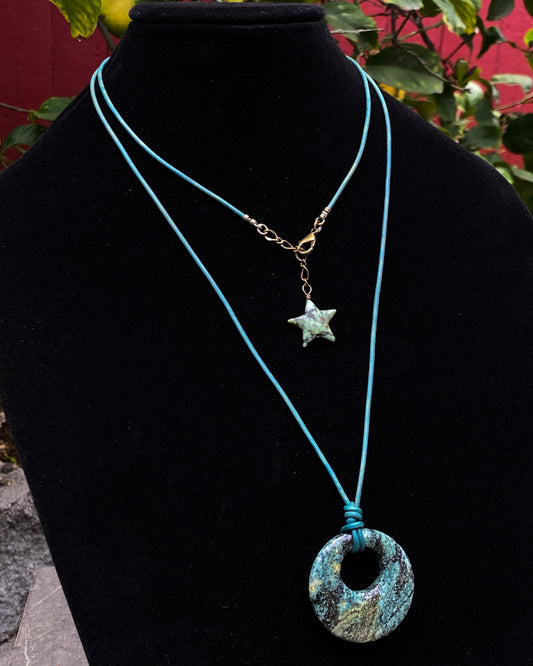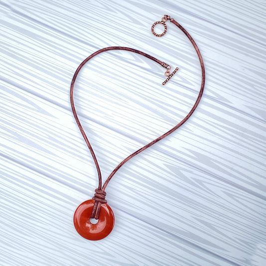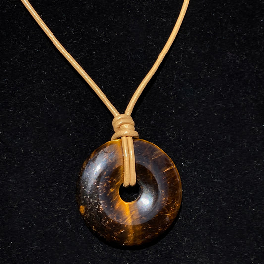 Tiger Eye gemstone Donut on genuine leather Necklace