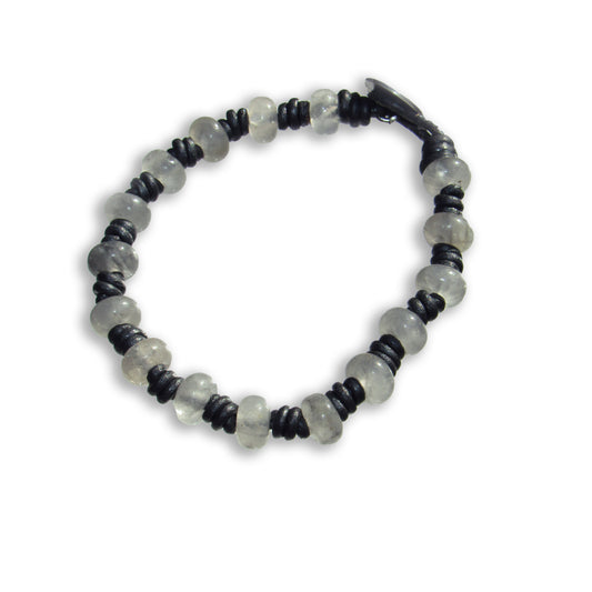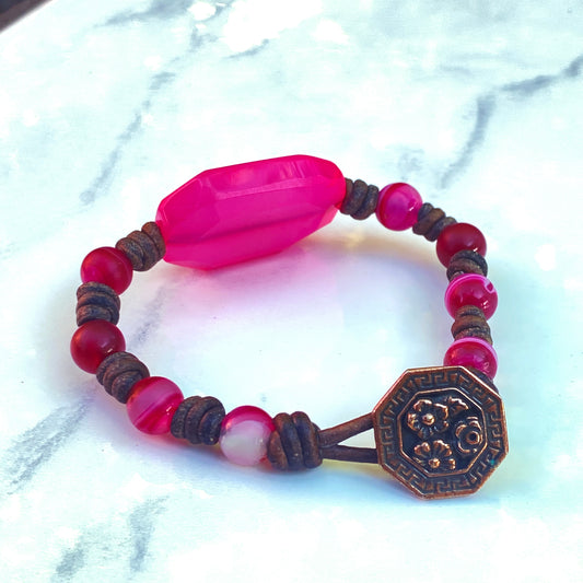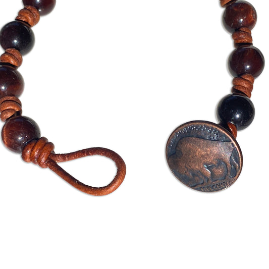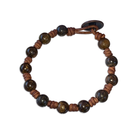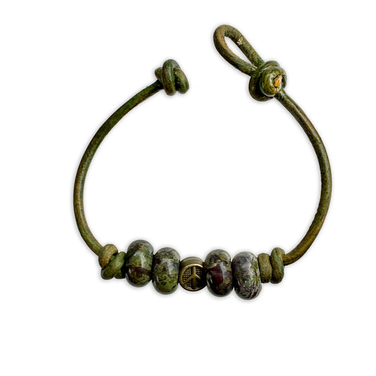 Dragon's Bloodstone Gemstone and Leather Peace Bracelet