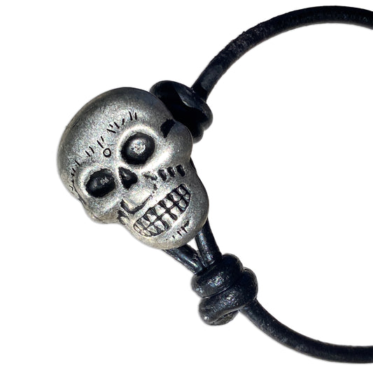 Labradorite gemstone Leather bracelet with Pewter Skull Button clasp