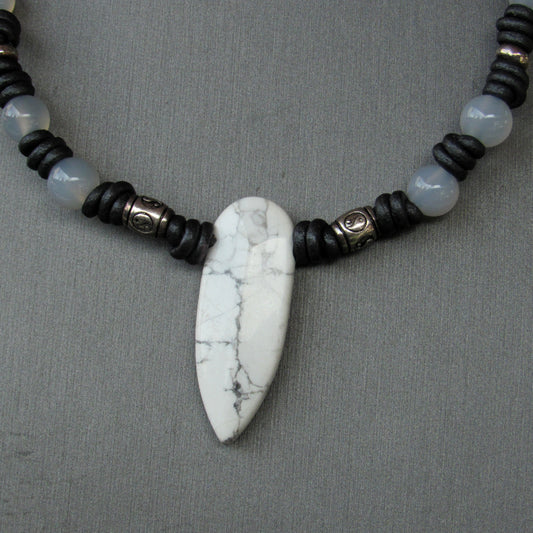 Howlite, White Agate gemstone with Sterling Silver Leather Necklace