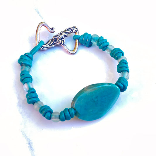 Agate and Fluorite gemstones on hand knotted Leather Bracelet