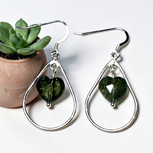 Green Aquamarine Heart Dangle Earrings