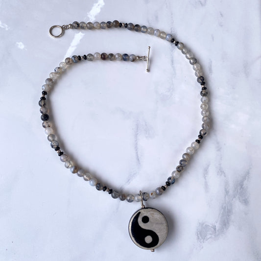 Onyx and Tibetan Agate gemstone Yin Yang Necklace