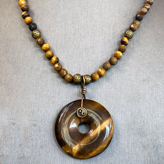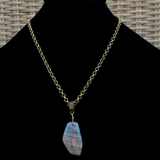 Titanium Coated Quartz gemstone on genuine Leather Necklace