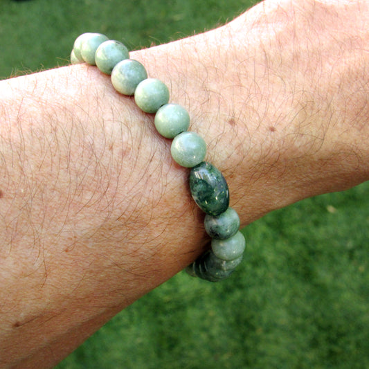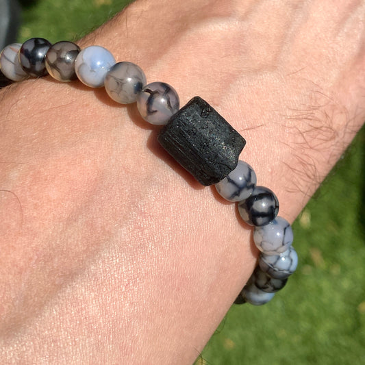 Dragon’s Vein Agate and Black Tourmaline gemstone stretch bracelet