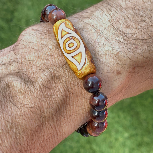 Tiger’s Eye gemstones and Tibetan Agate Bracelet