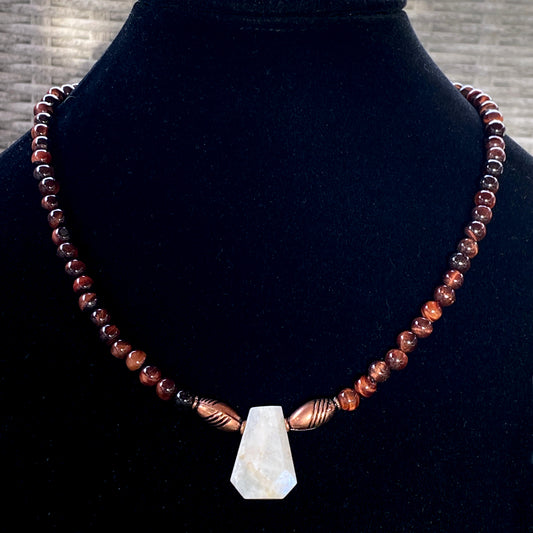 Moonstone and Tiger Eye gemstone beaded necklace