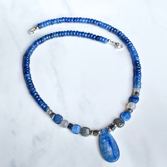 Kyanite, Labradorite gemstones, and Sterling Silver Necklace