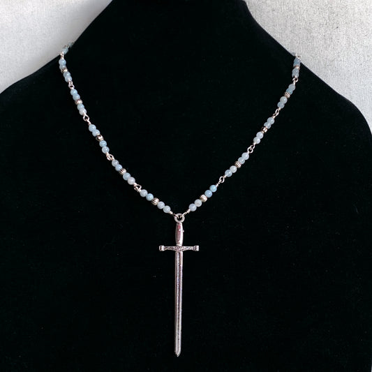 Pearl beaded necklace with silver plated Horseshoe pendant