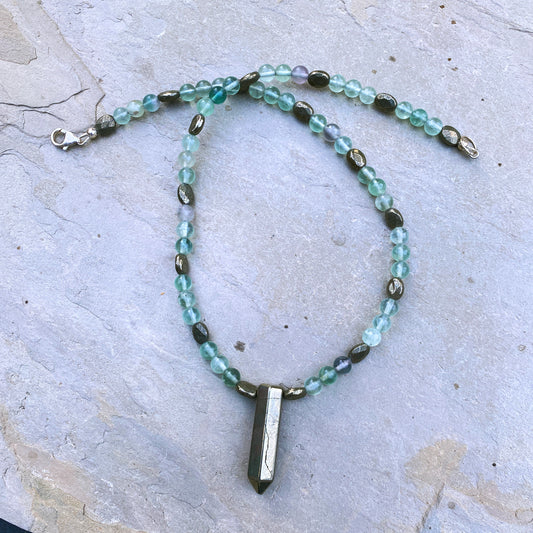 Men’s Fluorite Gemstone and Pyrite Necklace