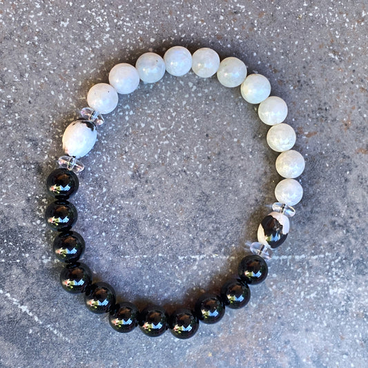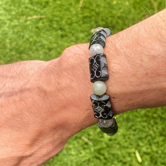 Men’s Moonstone, Onyx, and Zebra Jasper "Balance" stretch bracelet